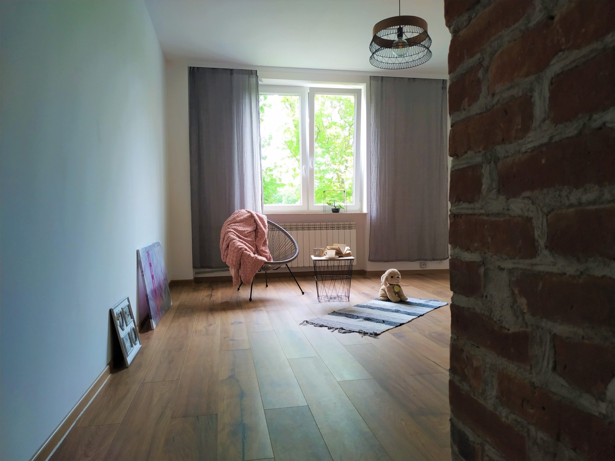 Mieszkanie 52m2 dwupokojowe na parterze z oddzielną kuchnią, z oknem i łazienką. W mieszkaniu udało się zbić tynk w salonie i odkryć zabytkową cegłę, która robi wrażenie:). Mieszkanie przy ul. Puławskiej 44 w Piasecznie.