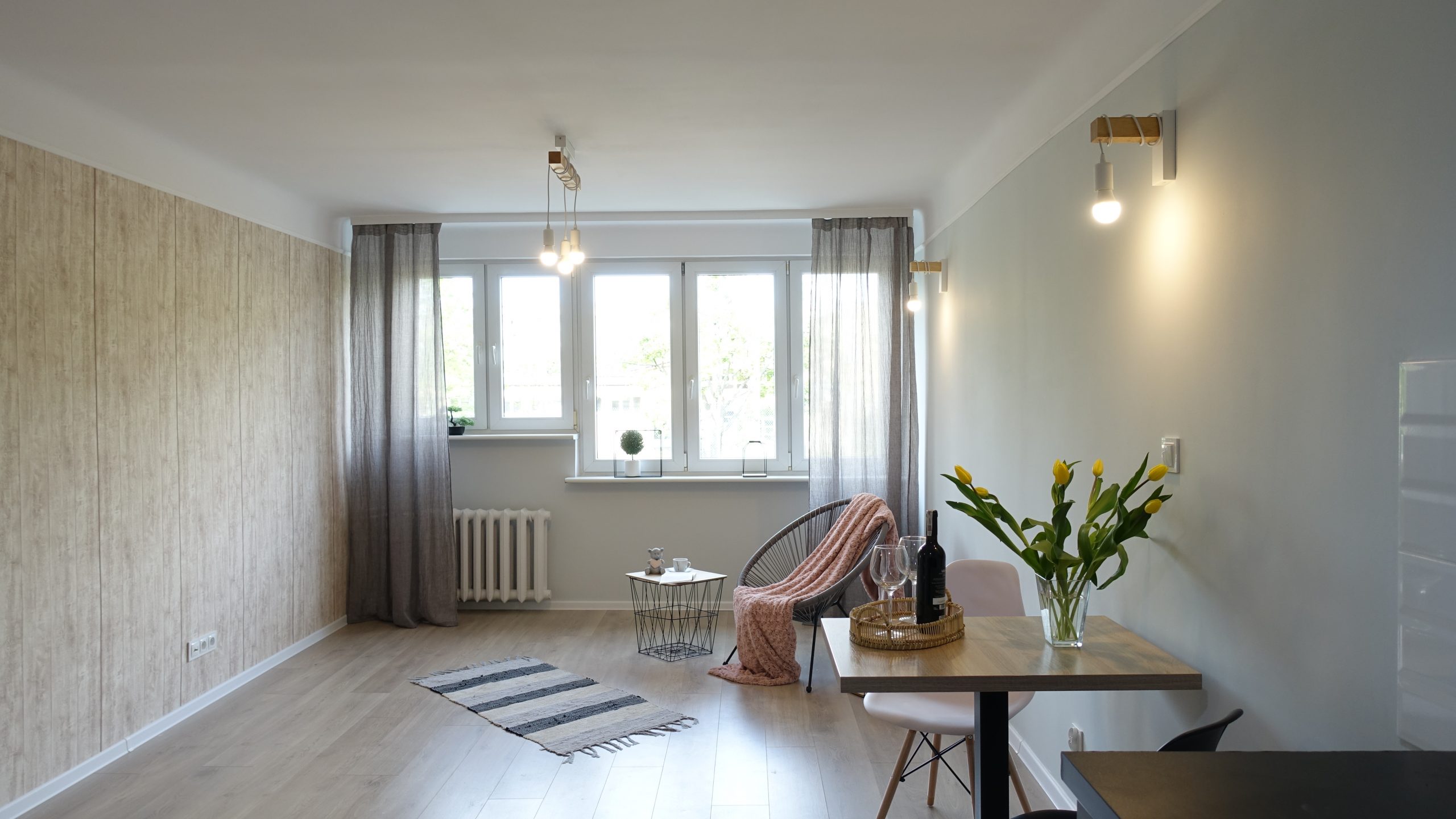 - Mieszkanie 37m2 na 2 piętrze – Otwarta kuchnia z salonem , sypialnia oraz duża łazienka . Przy ul. Wojska Polskiego 7 w Piasecznie